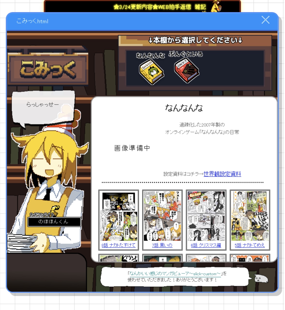 あと漫画ページ、ウィンドウ表示前提の画面構成になってるのでめっちゃ見づらいです。でも流石に疲れたのでとりまちょっとづつ対応していきます_(:3」z)_