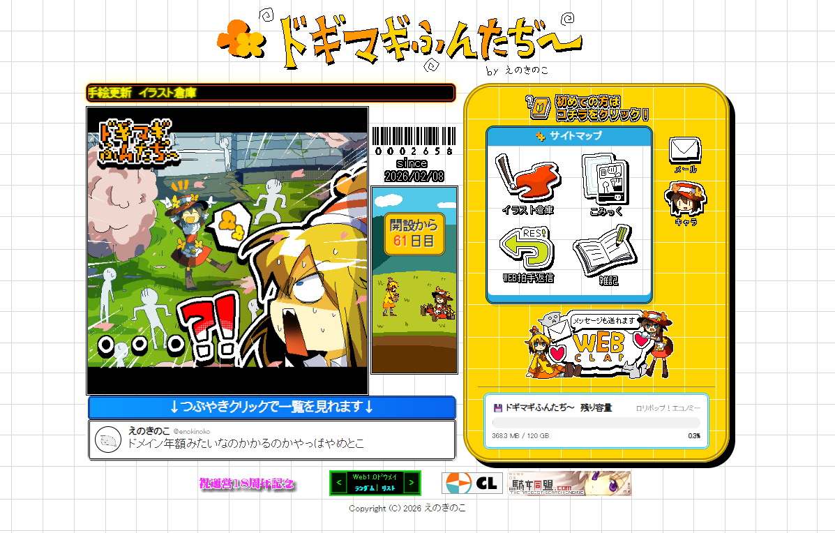 トップ画の隣が寂しくなったのでサイトの開設時期や日数など入れて穴埋めをしていきました(´ω`)