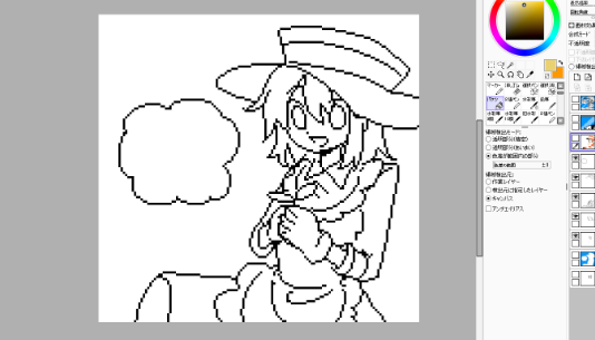 塗り方は、線の上からはみ出さないように1ピクセルづつ塗ってくのは大変なので